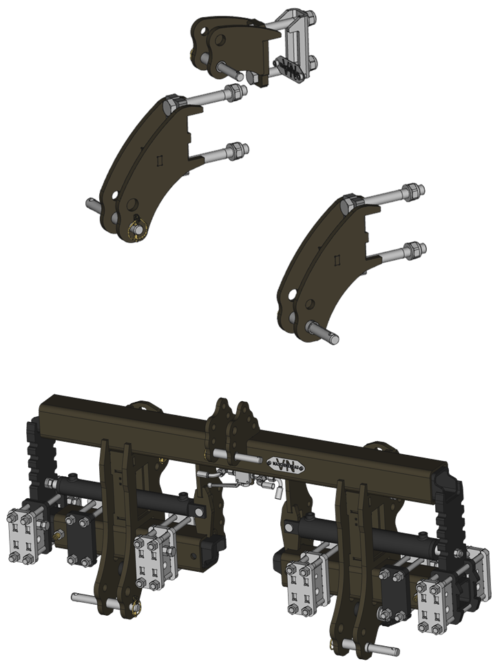- der Anbaurahmen kann direkt mittels Dreipunktanbaulaschen am Traktor gekoppelt werden